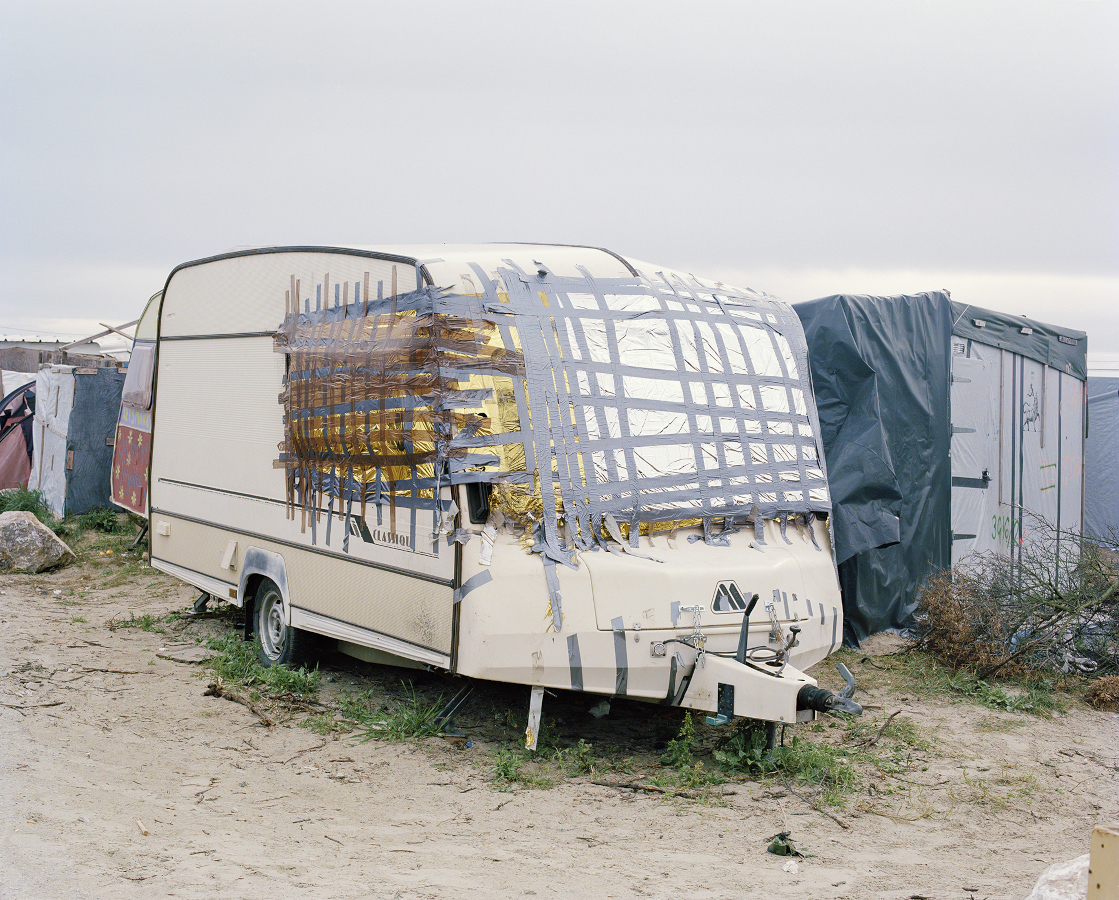 Image : ©Élisa Larvego, Caravane, zone nord de la Jungle de Calais. Série Chemin des Dunes, 2016