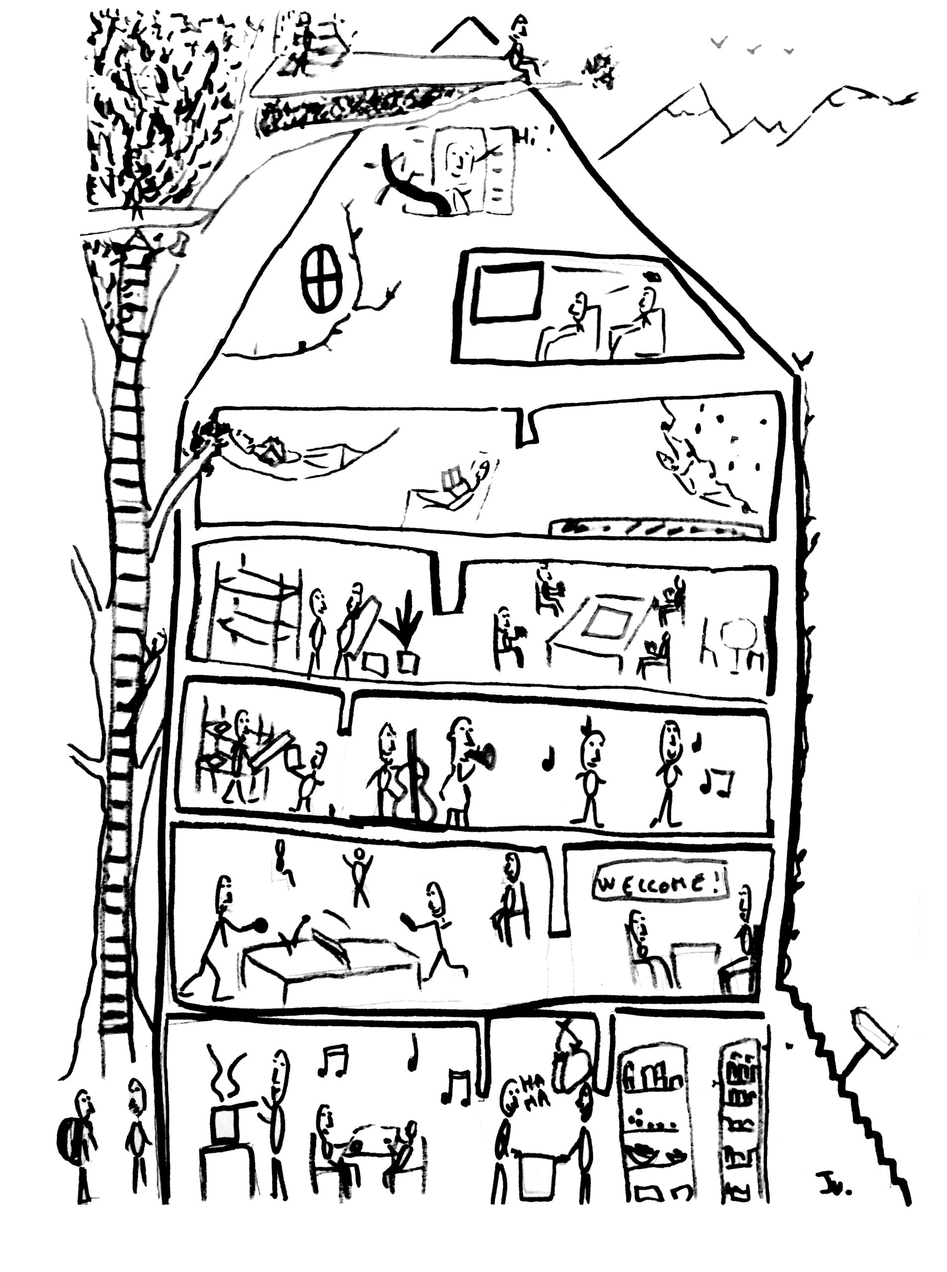 Le ZonneKlopper (ZK) tel qu’il est aujourd’hui est né de deux dynamiques inter-collectifs parallèles, autour de l’hébergement d’urgence pour des personnes en situation de précarité et d’un projet d’occupation nanti-capitaliste autogéré qui s’appuie le plus possible sur l’horizontalité et l’entraide. Au sein de cette ancienne usine cohabitent la ZK House, dédiée à l’accueil de personnes à la rue, principalement des Éthiopiens de la communauté Oromo, une « zone hébergement » où habitent les personnes – aux profils variés – partie prenante du projet, et différents espaces partagés pour les activités du collectif ouvertes à tou·tes. Cette cohabitation de la ZK House avec le projet politique du ZK est indubitablement l’une des spécificités de ce lieu bruxellois. Confronté·es à de grandes différences au niveau des vécus, situations administratives, des références culturelles, des engagements politiques ou encore des projets de vie, les co-habitant·es composent avec leurs idéaux et leurs aspirations diverses, ils et elles font de leur mieux dans cette rencontre pour prendre soin de leurs relations, sans naïveté mais sans renoncer à ce qui leur tient à cœur. Pour évoquer les formes et les difficultés de l’accueil qui se pratique à la ZK House, nous avons rencontré une partie du « cercle de travail Hébergement » : Jean-Baptiste et Michele, d’abord, et plus tard Alice, puis Omar en coup de vent, et enfin Paul, arrivé en tout dernier pour leur réunion hebdomadaire. Aperçu dans leurs mots des questions qui traversent cette expérience singulière.