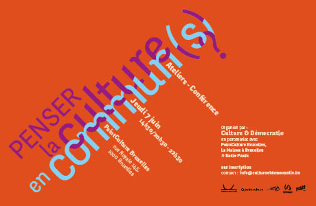 Journée d’ateliers et de conférence autour de la question Penser la culture en commun(s), organisée par Culture & Démocratie, en partenariat avec PointCulture, La Maison à Bruxelles et Radio Panik