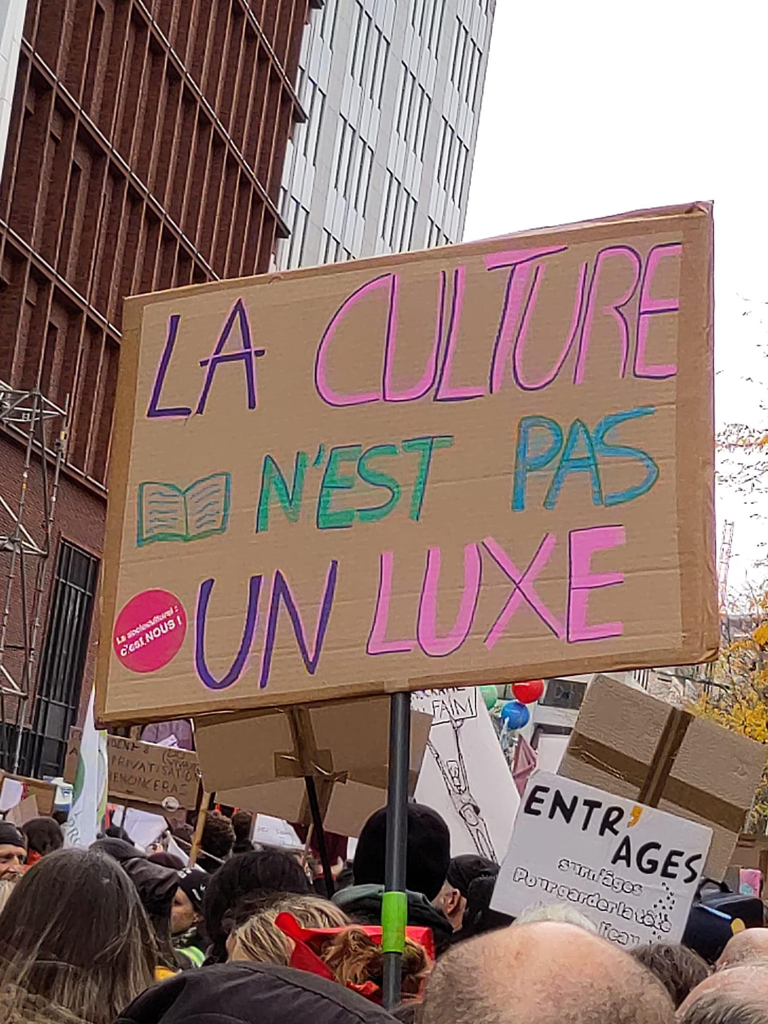 Le « faire culture » dont a besoin une démocratie pour être effective n’est pas mise en danger uniquement par les économies imposées au secteur culturel. Mais bien par le faisceau de mesures qui frappent les plus fragiles, par une série de décisions qui affaiblissent la « puissance publique » au profit d’une société du chacun·e pour soi. Enseignements, santé, protection sociale, culture, ce sont des piliers démocratiques qui sont attaqués. Sous les dehors techniciens et sans état d’âme des réductions de dépenses, c’est bien un cap idéologique qui est imposé à la société.